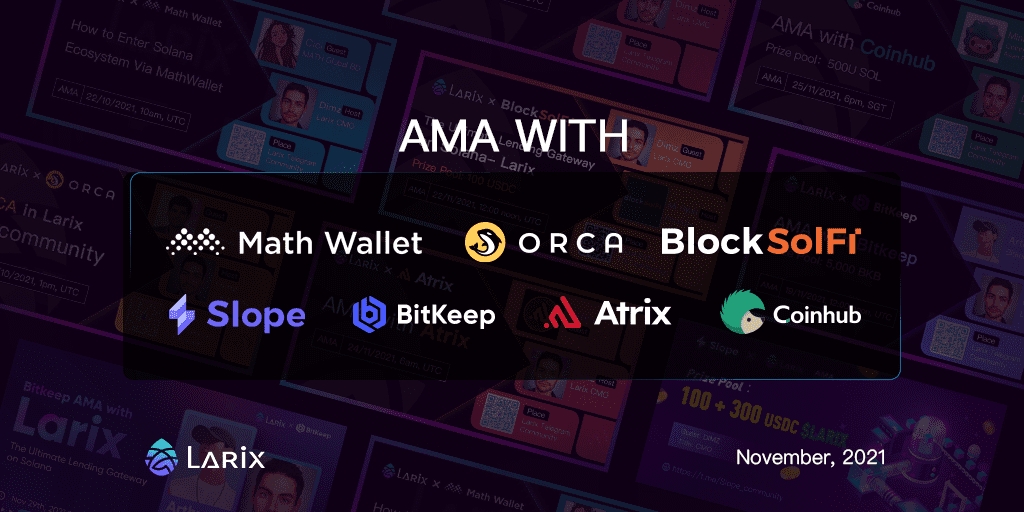 Larix held multiple AMAs with a number of different partners communities. Namely; Math Wallet, ORCA, Slope, Bitkeep, BlockSolFi, Atrix, and Coinhub.