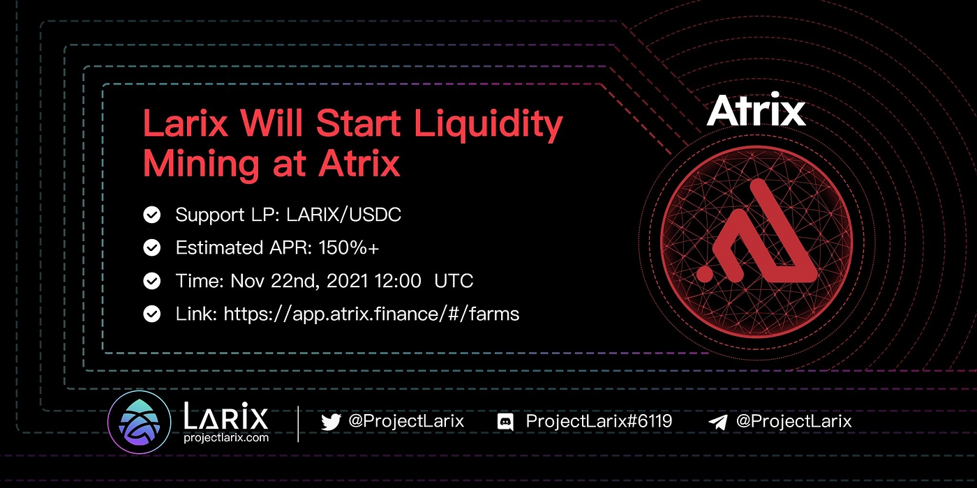 Atrix, one of the newest DEX protocols with an outstanding feel from a user perspective and who absolutely smashed it with the UI, has partnered with Larix to give users another portal for instant swap functionality in addition to LARIX/USDC liquidity mining with rewards that stretched up to 150%.